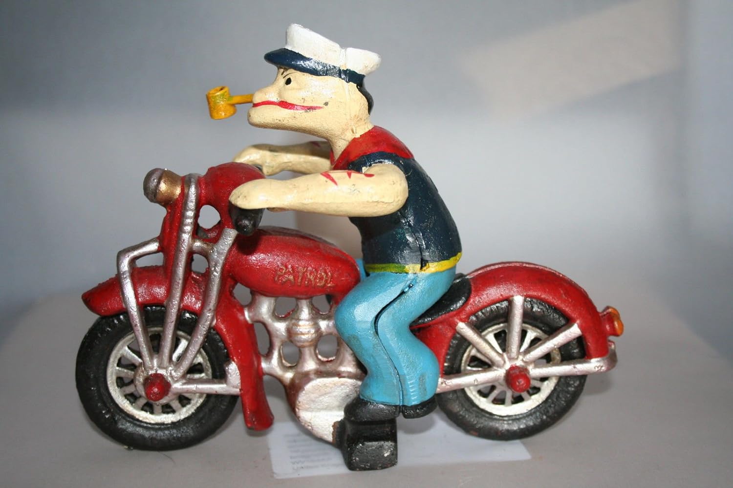 Login to view bids. His arms swivel so that he can put his hands on the motorcycle. Favorite Add to Solid cast iron Popeye on Motorcycle 1950s Modshique 8000.